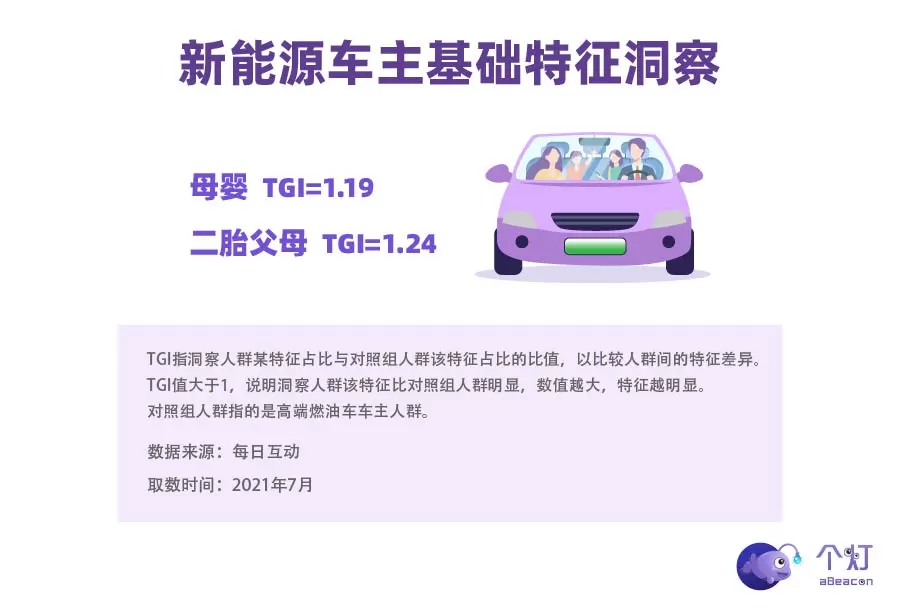 每日互动大数据显示,相比燃油车车主人群,新能源车主群体的“母婴”和“二胎父母”属性更加突出。