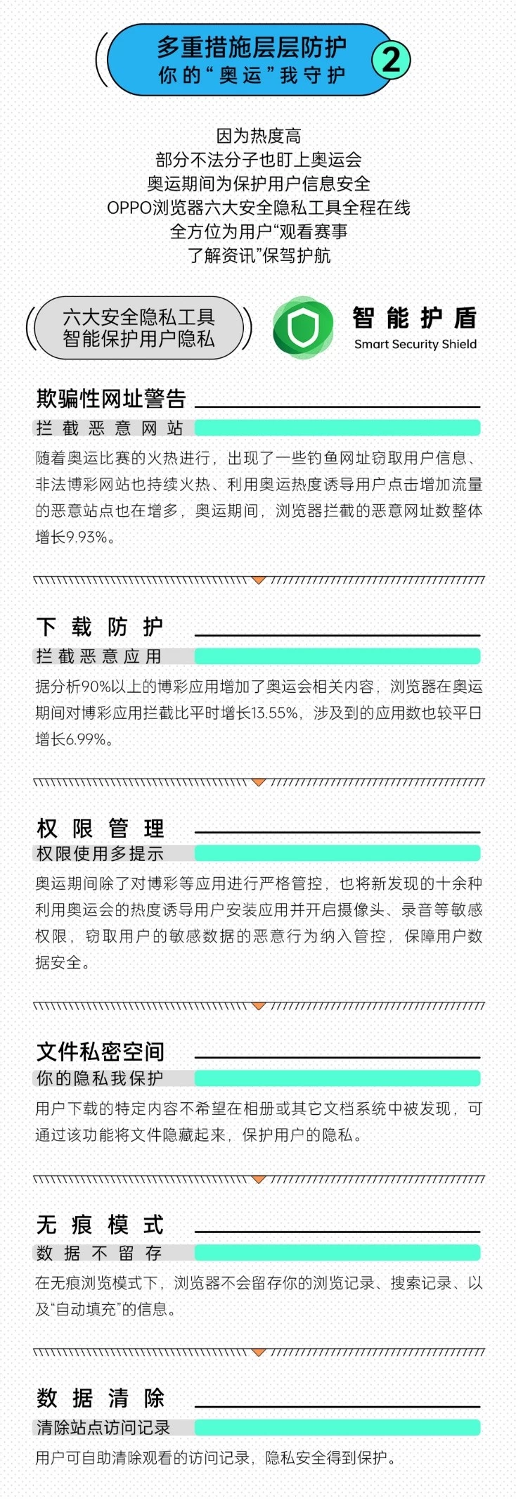 作为全球性的高规格赛事,奥运会吸引了全世界观众的目光,同时也让部分不法分子打起了歪主意,借由“奥运会”的名义实施各种诈骗犯罪。作为高流量分发入口,OPPO浏览器全程开启六大隐私工具,保障用户安心追奥运。