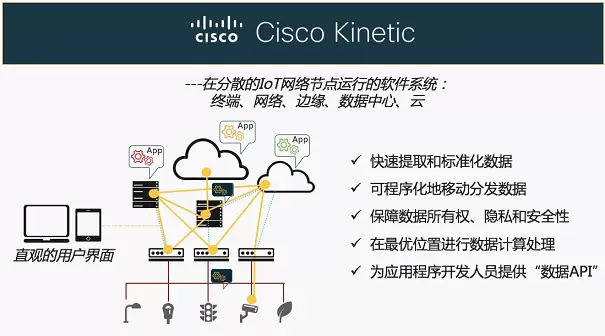思科Kinetic城市物联网基于思科 Kinetic分布式软件系统,以物联网数据交换矩阵打造而成。该平台通过执行提取数据、计算数据和移动数据三个关键功能来简化物联网运营: