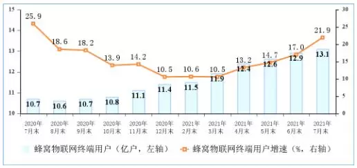 图:2020-2021年7月末物联网终端用户情况