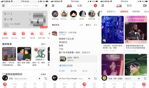 新版本的网易云音乐中,基于关注关系的“动态”和兴趣圈子的“云圈”,共同组成“关注”栏,强化音乐社区中的关系链接。