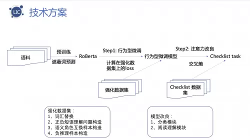 本次竞赛的机器阅读理解任务从细粒度、多维度挑战了机器理解语言的能力,包括词汇理解、短语理解、语义角色理解等五大考察维度。该赛道冠军——来自深圳平安集团金融壹账通的团队,介绍了行为型微调和注意力机制改良的两阶段微调方案。在行为型微调方案中,针对本次赛题的挑战,分别设计了词汇替换、正/负短语理解问题构造、语义角色互换样本构造和负推理样本构造的方法进行数据增强。并将增强的数据分为低质量和高质量两部分,先用低质量数据对模型做自适应的微调,再用高质量数据作为训练集扩充,从而提高模型的鲁棒性。