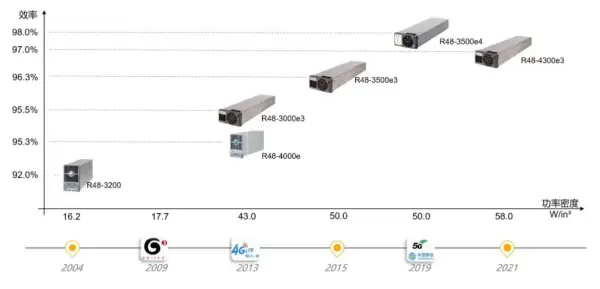 更高的转换效率意味着从市电到主设备中间的损耗的减少,更高的功率密度则意味着各类电源等基础设施的占地的减少,这对于如何有效降低基站占地,实现基站机柜化、快速规模部署尤为重要。