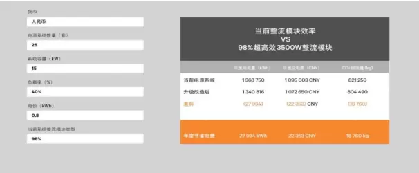 伴随电力电子技术的发展,转换效率提升的同时,功率密度也在不断提高。传统的柜式开关电源也已逐步往小型的嵌入式电源过度,传统基站的10~20平方米的机房将只需由1~2台智能机柜组成,基站的部署将更为灵活。稳步增长的移动物联网业务、激增的边缘计算需求、不断扩展的物联网应用,以及 5G 网络的出现,驱动靠近终端用户侧巨大的计算需求。这意味着未来将建设海量的通讯基站以及配套的电源系统,能源效率的重要性比以往任何时候都更为突出。随着 98% 超高效整流模块的应用,可以大量节省 OPEX 并减少温室气体排放,助力运营商“双碳目标”的实现。