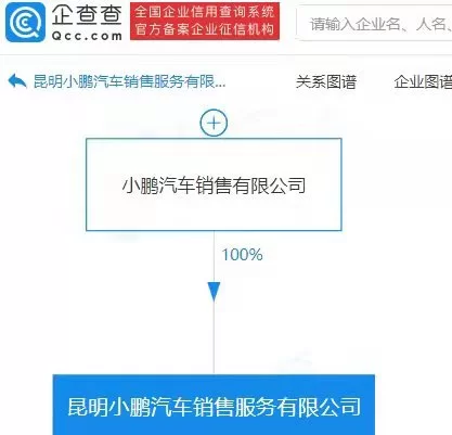 企查查股权穿透显示,该公司由小鹏汽车销售有限公司100%控股。