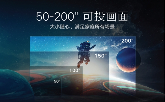 峰米R1可投尺寸为50-200英寸,距墙面1米摆放即可投影150英寸画面(图/网络)
