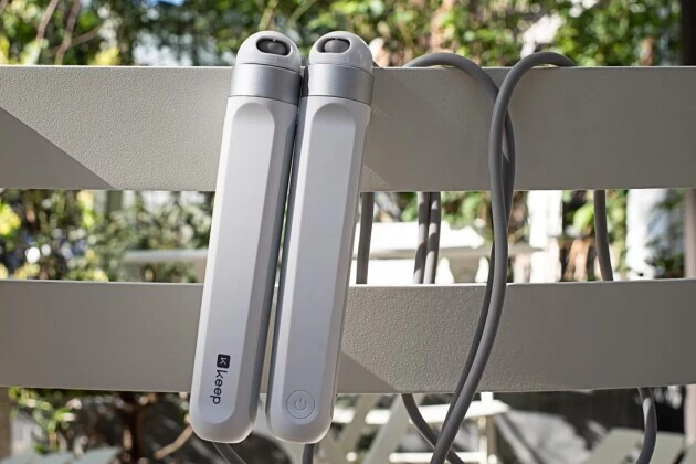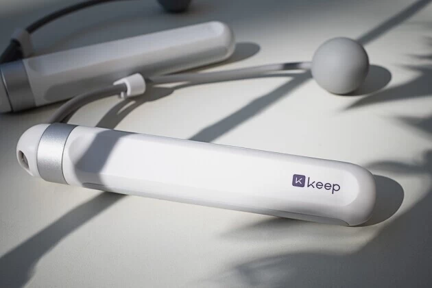 相比很多目前常见的跳绳产品,Keep 智能跳绳 SR1整体就是由两个手柄以及跳绳部分构成的。手柄采用了ABS磨砂手柄与两侧防滑硅胶设计,整体造型非常简约,但整体握持感很好,稳定且防滑,即使运动过程中,也不容易脱手,不易产生意外。