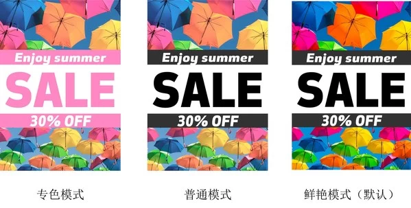 专色模式、普通模式、鲜艳模式对比