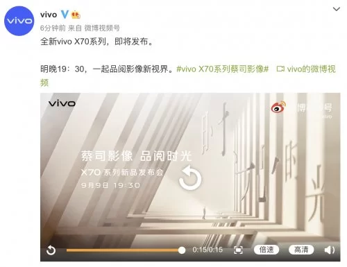 9月9日19时30分,vivoX70系列新品发布会即将召开,具体配置规格和价格也将在发布会上公布。作为年度影像旗舰,vivo X70系列会带来怎样前所未有的摄影新体验,又会为手机影像的未来创造怎样的机会,让我们共同关注,期待vivo X70系列带来的不俗表现。