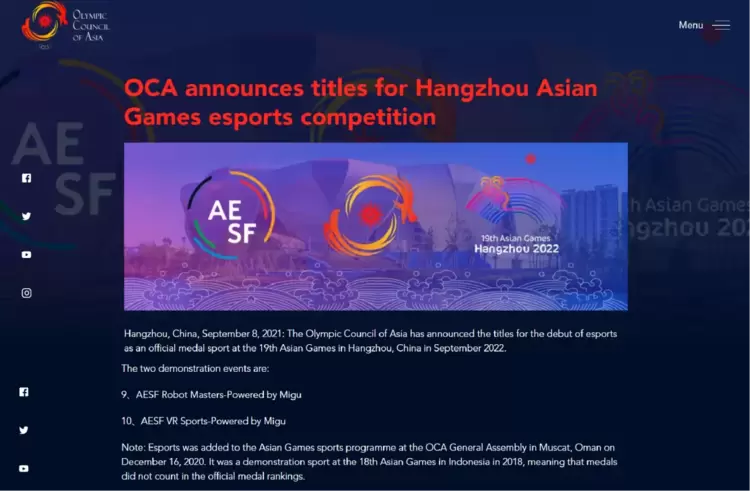 据亚奥理事会OCA和亚洲电子体育联合会AESF9月8日宣布,2022年杭州亚运会将设立十个电子竞技项目,含八个游戏电竞项目和两个数智竞技官方表演赛。其中,表演赛项目包括机器人竞技表演赛和VR虚拟科技体育表演赛,将由中国移动咪咕公司与亚电体联开展独家运营。这是洲际综合体育赛事史上第一次设立科技体育项目,意味着科技体育运动员将首次亮相亚运会这一竞技体育舞台,代表国家展示“数智竞技”体育的风采。