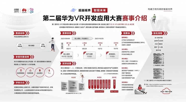华为VR开发应用大赛是专注VR相关应用实践和创新解决方案的全国性赛事,旨在助力基于5G云VR业务开展的云、管、边、端关键技术研究和攻关,拓展5G云VR在工业生产、商贸会展、医疗健康、教育培训、文娱休闲等多个领域的应用潜力,进一步推动5G与云VR产业深度融合并培育5G杀手级应用。