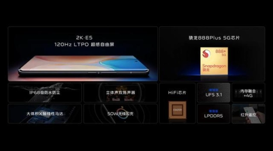 硬件方面,vivo X70 Pro+搭载 6.78 英寸 2K E5 超感自由屏,亮度峰值最高 1500nit;支持 10bit 色阶和 10.7 亿色显示效果,1Hz-120Hz LTPO 帧率智能切换。与此同时,vivo X70 Pro+搭载高通骁龙 888 Plus 旗舰芯片,结合自研的内存融合+4G 技术,以及 HID 碎片整理技术,带来强劲表现。旗舰级 IP68 级防尘防水、立体声双扬声器搭配独立 HiFi 芯片组合、大体积 X 轴线性马达、50W 无线闪充等旗舰配置。