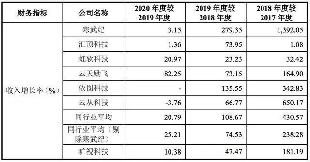 红星资本局注意到,虽然旷视科技研发投入力度较大,营业收入也逐年增长,但其主营业务收入增长率远低于同行业可比公司。旷视科技招股书显示,2018-2020年,同行业可比公司平均增长率分别为430.57%、108.67%、20.79%,而旷视科技同期的主营业务收入增长率则分别为181.19%、47.47%和10.38%,约为同行平均水平的一半。
