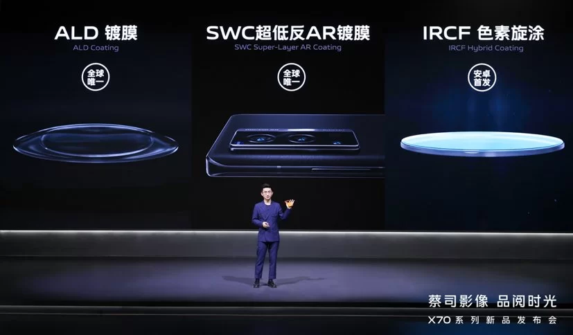 此外,vivo X70全系镜头均达到蔡司T*镀膜标准。vivo将更先进的SWC超低反AR镀膜、ALD镀膜、IRCF色素旋涂等镀膜技术及加工工艺应用在手机镜头中,通过多重镀膜提升画面纯净度,改善饱受诟病的眩光和鬼影等成像问题。