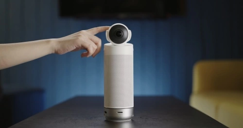 看到Meeting S轻巧便携,即插即用,可以快速的融入各类办公空间,走到哪都能马上开会。此外,看到Meeting S还拥有配套蓝牙遥控器,能在会议过程中帮助你快速入会。