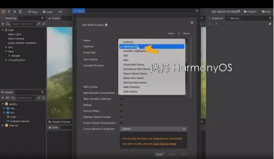 Cocos 在与华为团队的合作中,也保持了这自己的产品特性,开发者只需要先在 Cocos Creator 中完成内容开发,选择针对 HarmonyOS 操作系统的工程构建,然后将构建完毕的工程导入到 HarmonyOS 的 DevEco Studio 里编译/打包/部署调试,就可以顺利的发布到 HarmonyOS 平台上,熟悉这类开发的开发者操作起来非常简单。