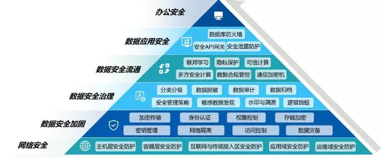 (3)在安全治理层,需要对数据进行脱敏、分类分级、审计、安全策略管理、水印与溯源等工作,为之后的数据安全流通做好前期准备工作。那么对于某些需要销毁的数据,企业也需要做到相应的数据归档和逻辑销毁工作,防止原有数据被再次读出和恢复;
