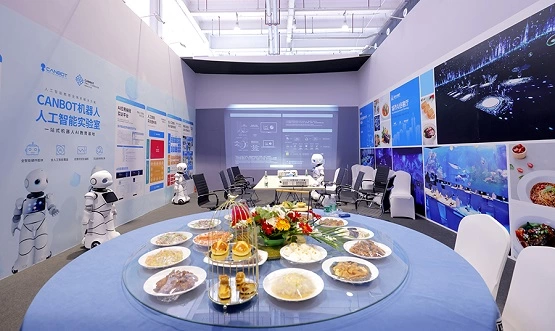 康力优蓝作为国内大型商用类人型服务领军机器人企业此次展会全球重磅发布了我国首款烹饪康养机器人新品-爱乐优膳养大师U08T(桌面版),联手地面版AI烹饪康养机器人U08,实现了产品的多功能和全覆盖。展台上一排身怀绝技、色彩靓丽的AI烹饪康养机器人正在专注忙碌地工作中,按智能引导投放食材、爆炒鸡翅中、焖制海鲜、炖洋虫草花鸡汤等等,热气腾腾的菜肴散发出浓郁的香味,令人垂涎不已。面对桌面上色香味俱佳的菜肴和AI黑科技康养诊断养护吸引了大批人士的关注,展台前观众摩肩接踵,高朋云集。