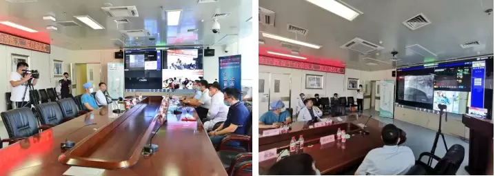 手术时使用黑龙江移动5G网络,设备采用华为新型室分设备Lampsite+华为CPE 2.0;多路视频时延降低到25ms,并且整个手术过程中时延无抖动。哈医大二医生坐在会议室屏幕前,实时对海伦市人民医院在进行的支架植入手术指导,从指引导管就位、导丝通过、球囊预扩张、选择一支支架精准释放到最后的后扩张,历时不到30分钟,在哈医大二医院医生指导下手术顺利进行,临床效果非常满意。