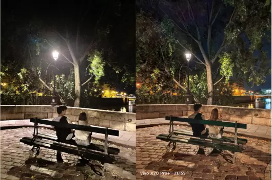 左图:其它手机拍摄;右图:X70 Pro+拍摄