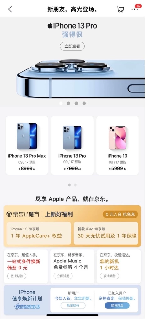 Apple新品首发期购iPhone 13系列送一年AppleCare+ 京东这一波值得期待