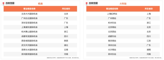 航空铁路出行方面,北上广深或将成为繁忙客运枢纽聚集地。预计北京大兴国际机场、广州白云国际机场、深圳宝安国际机场、上海浦东国际机场、上海虹桥站、广州南站、杭州东站、北京南站等将迎来客流高峰。在市内出行方面,上海、北京、成都三地或将成为最热打车地。