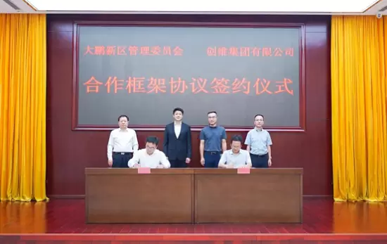 2021年9月15日上午,创维集团与大鹏新区管理委员会签署合作框架协议。在大鹏新区党工委副书记、管委会主任刘广阳、副主任孙晓杰和创维数字总裁施驰的见证下,创维智慧总裁罗英群与大鹏新区管委会副主任吴波共同签署协议,标志着创维与大鹏新区的合作正式启航。
