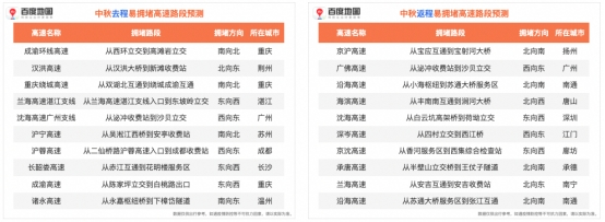 (图:2021年中秋假期全国去程&返程易堵高速路段预测)