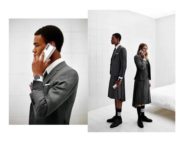 在经过之前产品的成功后,三星与Thom Browne的合作一直都备受期待。这次推出的三星Galaxy Z Fold3|Flip3 5G Thom Browne限量版,将全新的可折叠体验以及独特的沟通方式呈现给消费者。限量版手机的设计传承经典又焕然一新,将Thom Browne标志色镶边于崭新的白色哑光表面;流线型的玻璃机身,尽显对称之美;银色铰链将光线反射强化,为设计再添流光溢彩。限量版礼盒中的皮革配饰同样奢华,精致缝合的细节无不展现出Thom Browne世界中的潮流品味和格调。