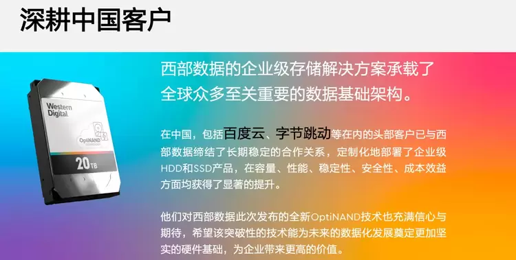 西部数据深耕中国市场 和头部互联网公司拥有深度合作