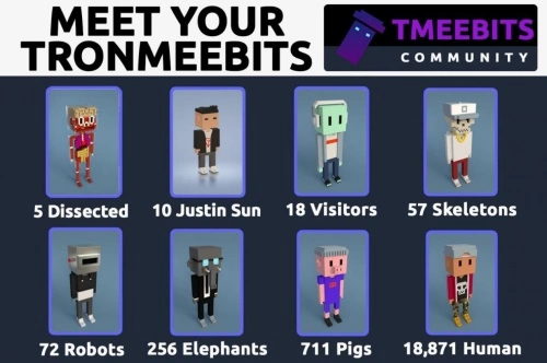 该项目在致敬 Meebits的基础上,在多方面做了拓展与创新,比如新增的Justin Sun Meebits。所有的3D角色均由算法生成,并铸造在波场区块链上,经 TRC-721协议确定所有权,适用于任何兼容的机构或交易所。