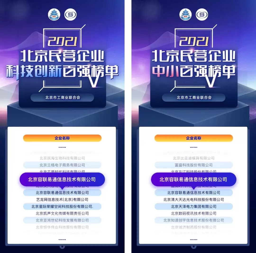 容联云入选2021北京民企【科技创新百强】及【中小企业百强】