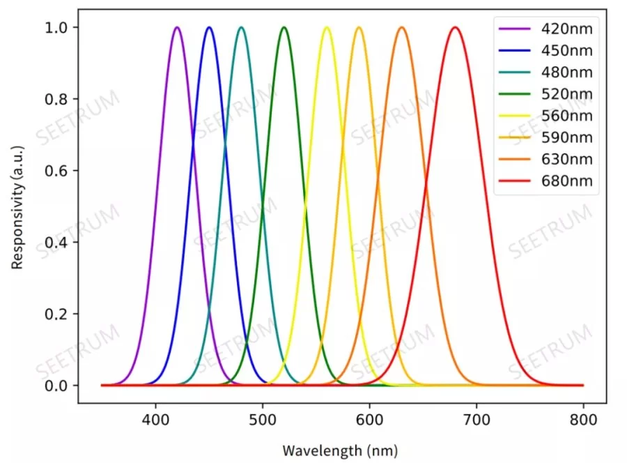 光谱分辨率可低至2nm,还可根据需求自定义通道波段、通道波形和通道数量,在宽谱场景下表现优异。光谱相机因其使用小型模组并搭载快照式多光谱成像芯片,未来可能成为一款引领市场风向的产品。