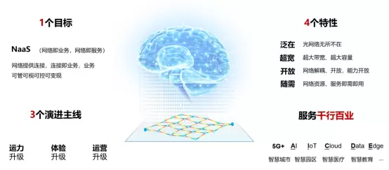 为了实现“智慧光网”的总体目标,烽火通信从网络运营及客户体验提升的角度不断进行创新,提出以“运力升级、体验升级和运营升级”为运营商带来NaaS网络经营的新模式,同时秉承“泛在、超宽、开放、随需”的4大特性,不断深挖物理网络和智慧大脑的潜能,释放光网新价值。