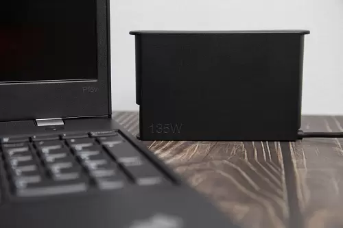 在续航上,ThinkPadP15v依旧延续了ThinkPad祖传的方口,并且随机附配备ThinkPad大功率电源,额定电压为20V,最大供电功率达到了135W,虽然体积有些大便携性一般,但毕竟这是一款主打专业图形处理的工作站,因此搭载大功率的充电适配器,来满足高功耗的工作需求还是很有必要的。
