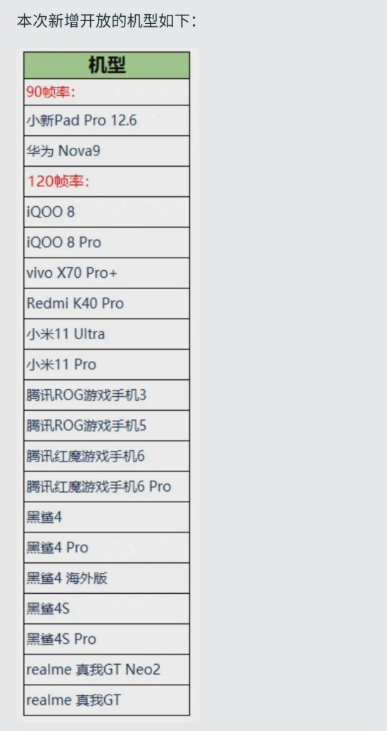 王者荣耀新增120帧模式,14款机型适配 无iPhone 13