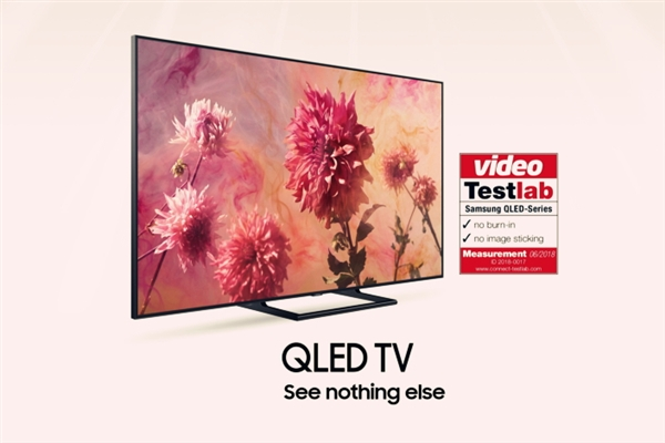 三星今天(7月12日)宣布,旗下所有2018款的QLED量子点电视获得了德国科技杂志video的“不烧屏”认证,这项严苛的测试由video和connect Testlab共同完成。