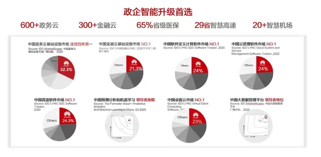 华为云Stack不仅得到了市场的广泛认可,也得到了行业权威研究机构的高度评价。IDC报告显示,华为云Stack在中国政务云市场占有率连续4年名列榜首,在中国金融云基础设施市场(自建云)连续三年位居份额第一,在2020年中国软件定义计算软件市场上位居第一,连续第四年和第五年占据中国云管理软件及桌面云软件市场份额第一。另一家行业权威研究机构Forrester将华为云Stack列入预测分析和机器学习市场的领导者象限,华为的FusionInsight大数据平台被列入Strong Performers象限,在中国厂商中排名第一。