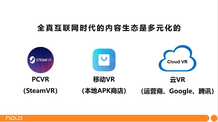 NOLO张道宁表述:“未来内容生态PC端VR +移动端VR+云VR,三种内容生态齐头并进的状态。”
