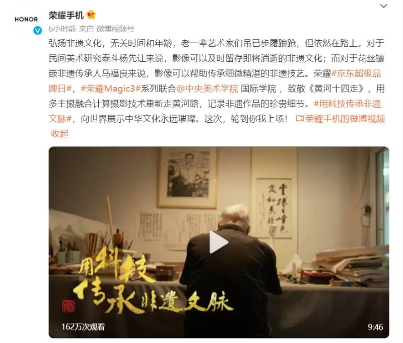 “看见“非遗 荣耀Magic3系列用影像重走黄河路完整版纪录片上线