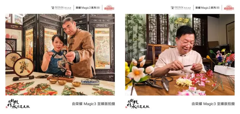 从预告片发布、正片上线,到访拍华县皮影非遗传承人汪天稳、汪海燕父女,南京绒花制作技艺江苏省级传承人赵树宪,荣耀Magic3系列以多主摄融合计算摄影技术为载体,将非遗文化的价值留在影像里,向世界展示悠久灿烂的非遗文化,让“看见“成为另一种传承守护的方式,这就是荣耀Magic3系列携手中央美术学院国际学院,用科技传承非遗文脉的内核:记录和传承,让更多的人了解和重视非遗,助力非遗文化传承保护。
