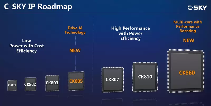 此次峰会上,中天微发布了两款CPU IP,分别是CK805和CK860,这两款新品都配备了AI加速引擎,可快速帮助客户切入AIoT市场,同时提供了面向了AI和DSP领域的软件开发套件SDK,方便客户在上面开发应用。