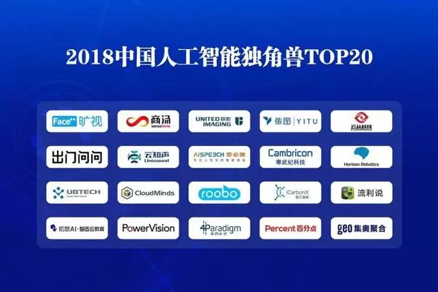 2018年中国人工智能独角兽TOP20发布,旷视科技再次榜上有名