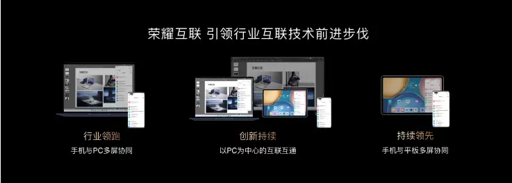 现在荣耀多屏协同又迎来了新的升级,在原有的基础上打破多平台设备之间的隔阂,实现了手机、PC、平板以及智慧屏之间的高效协作,带来前所未有的智慧互联体验。