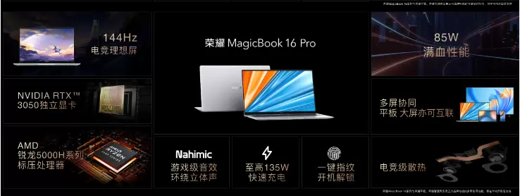 9月26日,新一季荣耀智慧生活新品发布会举行,荣耀新一代高性能大尺寸轻薄本荣耀MagicBook 16/16 Pro锐龙版正式亮相:144Hz电竞理想屏、85W满血性能,释放高能生产力;多屏协同再次升级,带来全新智慧体验;16.1英寸超大屏幕,87.3%高屏占比,体重轻至1.84kg,真正实现轻巧便携与大视野兼顾。荣耀MagicBook 16/16 Pro锐龙版将于9月26日 21:30正式开启预售,价格为4999元起。