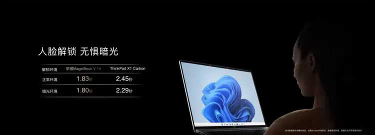 随着远程办公模式趋于主流,荣耀将Magic影像技术优势,延伸到荣耀MagicBook V 14笔记本上,业界首发前置500万高清广角双摄像头,支持90°超广角拍摄,画面更清晰、范围更广;另外一颗IR红外摄像头,实现人脸暗光快速解锁;并采用四个高降信噪比麦克风,四个扬声器设计,实现5米距离清晰拾音和立体宽音域效果,打造非凡的音视频会议系统。
