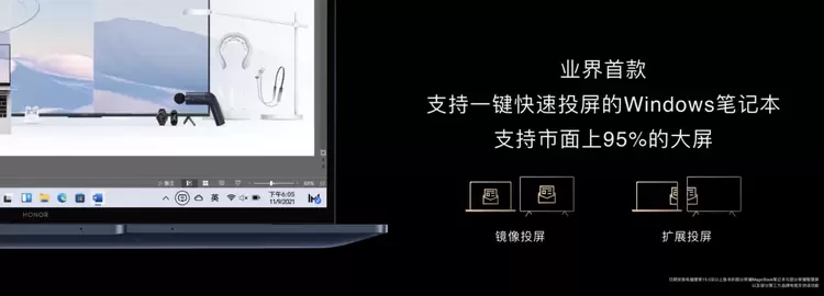 荣耀MagicBook V 14与智慧屏之间,可通过多屏协同,PC内容直接扩展或镜像到智慧屏,并支持长时间稳定投屏,分辨率支持1080P,画面清晰,播放流畅。比如,商务人士可以将PPT等商务文件在PC上投屏到智慧屏上,借助大屏优势,提升分享体验。