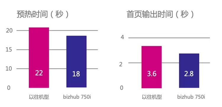 bizhub750i的预热时间和首页输出时间较前代机型明显缩短