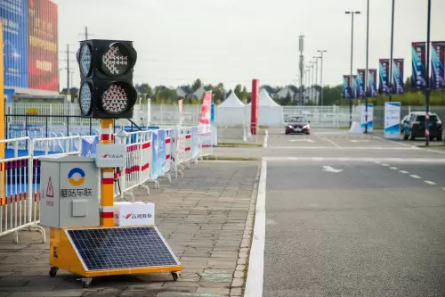 在现场,可以看到用于模拟实际路况的智能路侧设备RSU系统和红绿灯系统,参与绿波车速通行、红绿灯读秒、弱势交通参与者等场景,体验车路协同技术为智慧交通带来的数字化、智能化改变,助力自动驾驶和低碳出行。