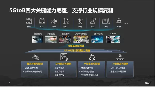 第四个是行业标准可复制,在行业实现1-N规模复制的过程中,标准加持尤为重要。目前在制造、煤矿、钢铁、港口、电力等重点行业,我们与行业组织、产业伙伴一起共同推进了相关标准的立项,5G融入行业标准体系已取得了关键进展。